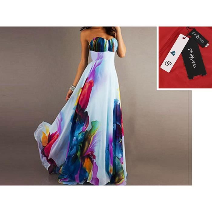 Finddress Sexy Bustier Robe De Soiree Cocktail Ceremonie Robe Boheme Chic Ete Robe Longue Grande Taille Fluide Lache Impression Flor Bleu Achat Vente Robe Cdiscount
