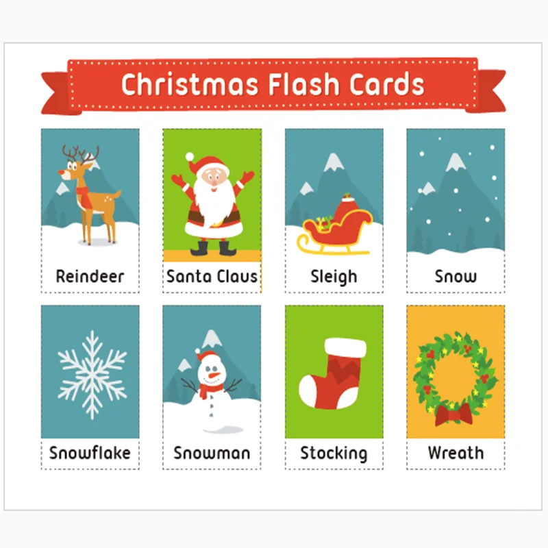 Christmas Flashcards (Set 1 & Set 2) Here’s a list of words that are in these two free flashcards download packs Set 1 a Christmas tree, Santa Claus, a reindeer, a star, presents, a candy cane, a snowman, an elf Set 2 pie, cookies, an ornament, Christmas lights, bell, a stocking, toys, holly. Printable Christmas Cards 450 out of 5 different card designs in three sizes Colouring Pictures 500 out of 5 Black and white images for holiday colouring projects Christmas Flashcards 500 out of 5 23 Christmas holiday vocabulary words Christmas Banners. Christmas Christmas Christmas Vocabulary Cards with Record Sheet 59 Christmas Vocabulary/Flash CardsThis resource has been designed to help students become familiar with or revise traditional Christmas symbolsYour vocabulary cards have been designed as environmental print to support your litera.