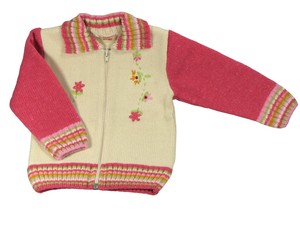 Gilet Zippe Rose Ecru Fonce En Laine Bebe Fille Taille 24 36 Mois Ebay
