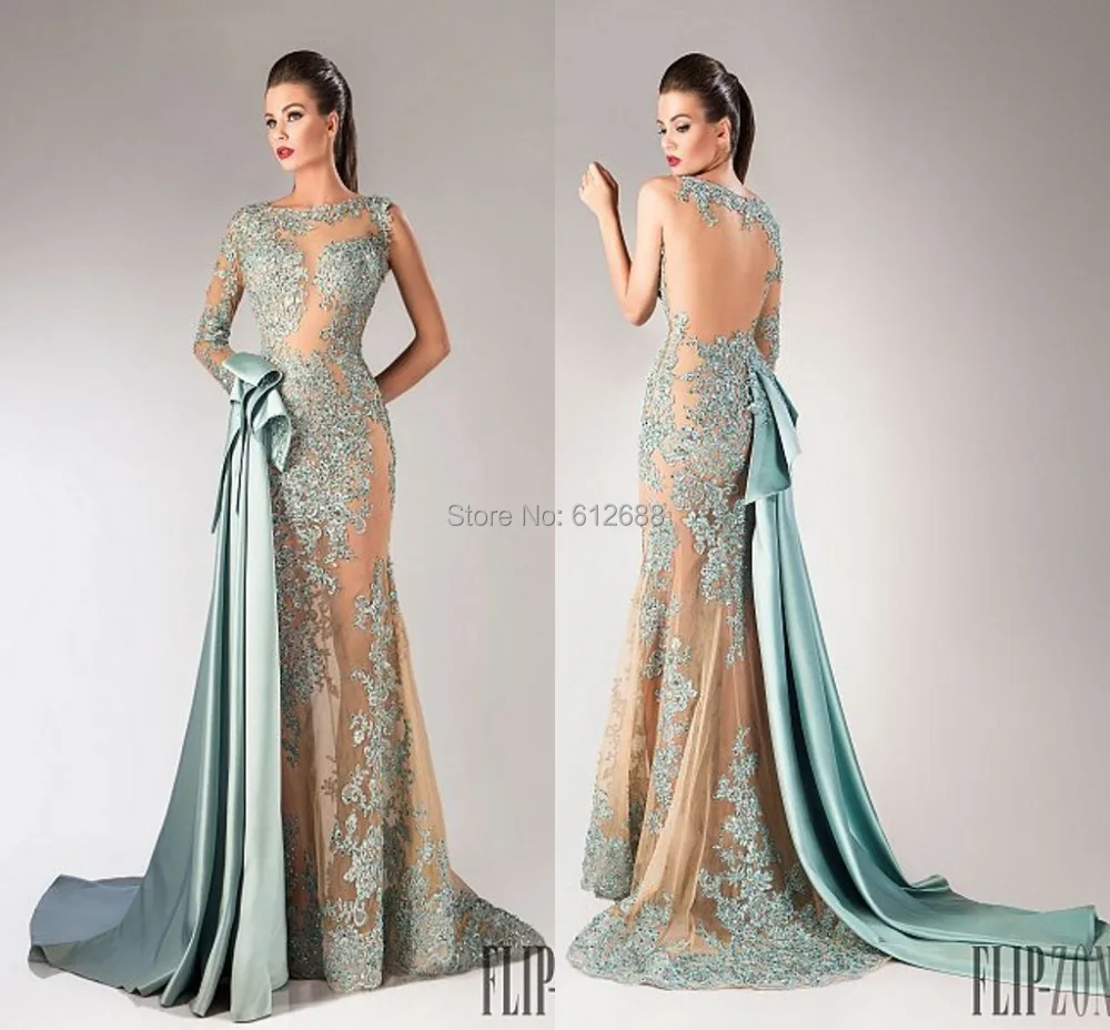 De Luxe Dentelle Perles Voir A Travers Les Paillettes Scoop A Ligne Robe De Festa Une Epaule Sexy Longue Robe De Soiree Aliexpress