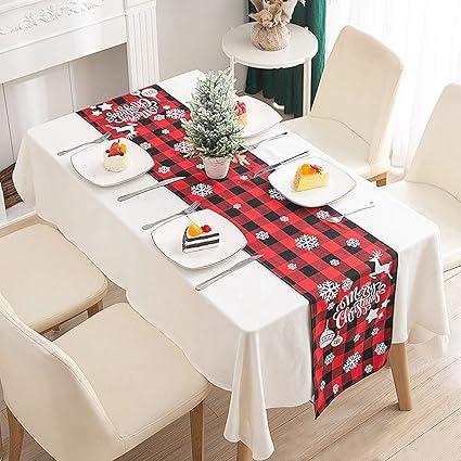 Lovfashion Chemin De Table Noel Toile De Jute Coton Rouge Plaid Noir Chemin De Table Reversible Buffalo Check Pour Fete De Noel Fete Fete Decoration Decoration De La Maison 14 X 71