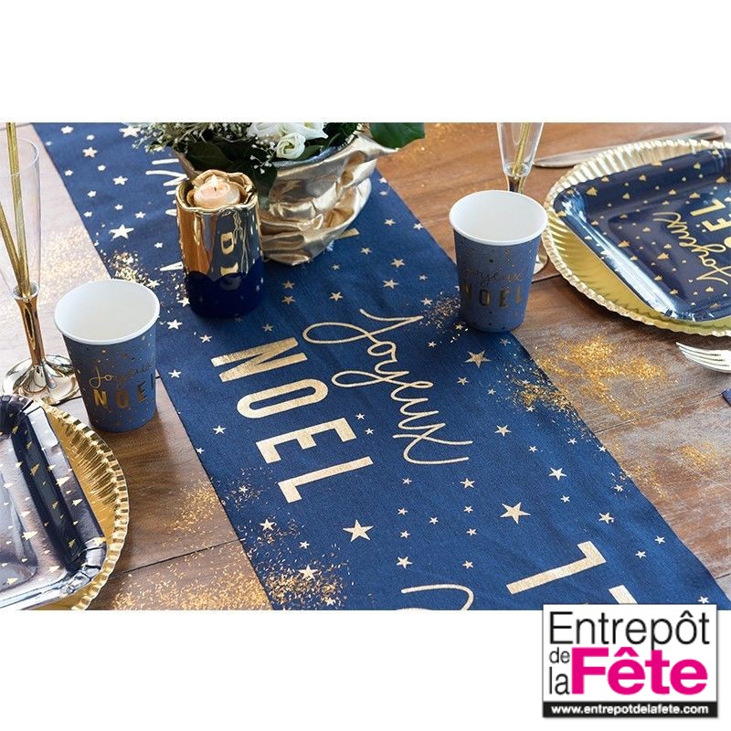 Chemin De Table Joyeux Noel Bleu Et Or L Entrepot De La Fete