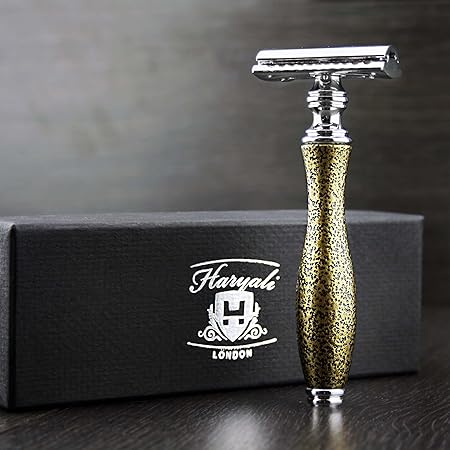 Haryali London Assemble A La Main Doubale Bord Dore Antique Texture Rasoir De Securite Superbe Idee Cadeau Pour Debutant Grand Pere Pere Mari Ou Boyfriend Amazon Fr Hygiasne Et Soins Du Corps