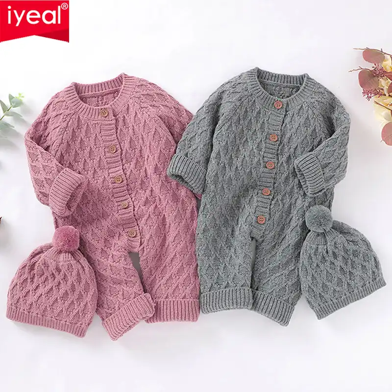 Iyeal Bebe Garcon Combinaisons Fille Tricote Barboteuses Cardigan Nouveau Ne Bebe Vetements Barboteuse Avec Chapeau Infantile Combinaison Coton Enfant En Bas Age 0 24m Aliexpress