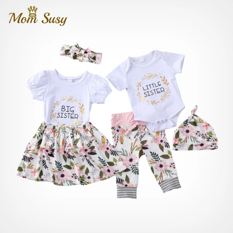 Bebe Fille Grande Petite Soeur Correspondant Ensemble De Vetements Nouveau Ne Bebe Barboteuse Pantalon Haut Pour Fille Robe Costume 2 Pieces Ete A Manches Courtes Vetements Aliexpress