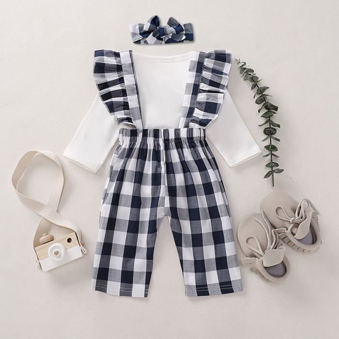 Ensemble De Vetements Nouveau Ne Bebe Filles Pour Nourrissons Solides Pantalons Romper Ruffle Plaid Casual Vetements Outfittz 596 Bleu Achat Vente Ensemble De Vetements Cdiscount