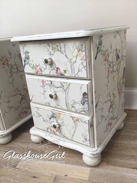 Shabby Chic Birdie Bedside Cabinets Ivory Cream Birds Etsy
