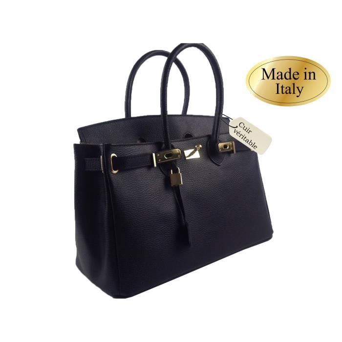 Sac A Main Noir Cuir Veritable Femme Mode Chic Achat Vente Sac A Main Femme Cuir Noir Cdiscount