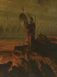Their basic mood largely derived from the artist's familiarity with John Milton's epic poem Paradise Lost and with the biblical Apocalypse The Pandemonium of 1841 goes back to a passage in the first book of Milton's Paradise Lost, in which "Pandemonium, the palace of Satan, rises suddenly built out of the deep". John Martin () Pandemonium signed and dated 'J Martin/1841' (lower right) oil on canvas 48½ x 72 5/8 in (1232 x 1844 cm) in the artist's original frame. Martin based this hellscape on English poet John Milton’s 1667 masterwork Paradise Lost, in which hell is dubbed Pandemonium Martin’s version of Pandemonium is a deserted, redhot world of torment helmed by an armored Satan In the foreground, the devil raises his arms in as he calls unseen rebel angels to action.