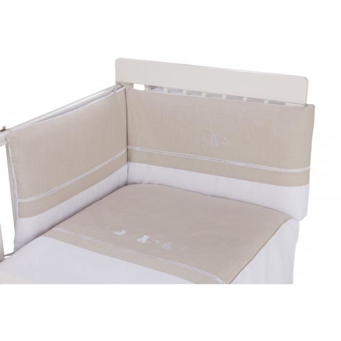 Présentation produit Parure de lit bébé beige et blanc ensemble 14 pièces avec tour de lit modulable 60x1cm Haut de page Magnifique ensembleLe plus du tour de lit est que vous pouvez changer les coussins de place pour personnaliser votre tour de litIl se compose de;taie d'oreiller 40x60cm(fermée par une glissière sécurisée)Housse. Cliquez et découvrez tous nos différents imprimés et coloris Les cookies assurent le bon fonctionnement de nos services. Tour de lit en coton picqué matière très douce Crée un nid douillet lors des premiers sommeils de bébé Comparer () 0 Panier / Quax – Tour de lit/parc ethnic beige/natural Nouveau;.