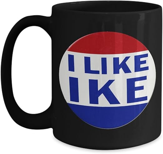 Amazon Com I Like Ike Vintage Campaign Button Design Black 15 Oz Coffee Mug Kitchen Dining