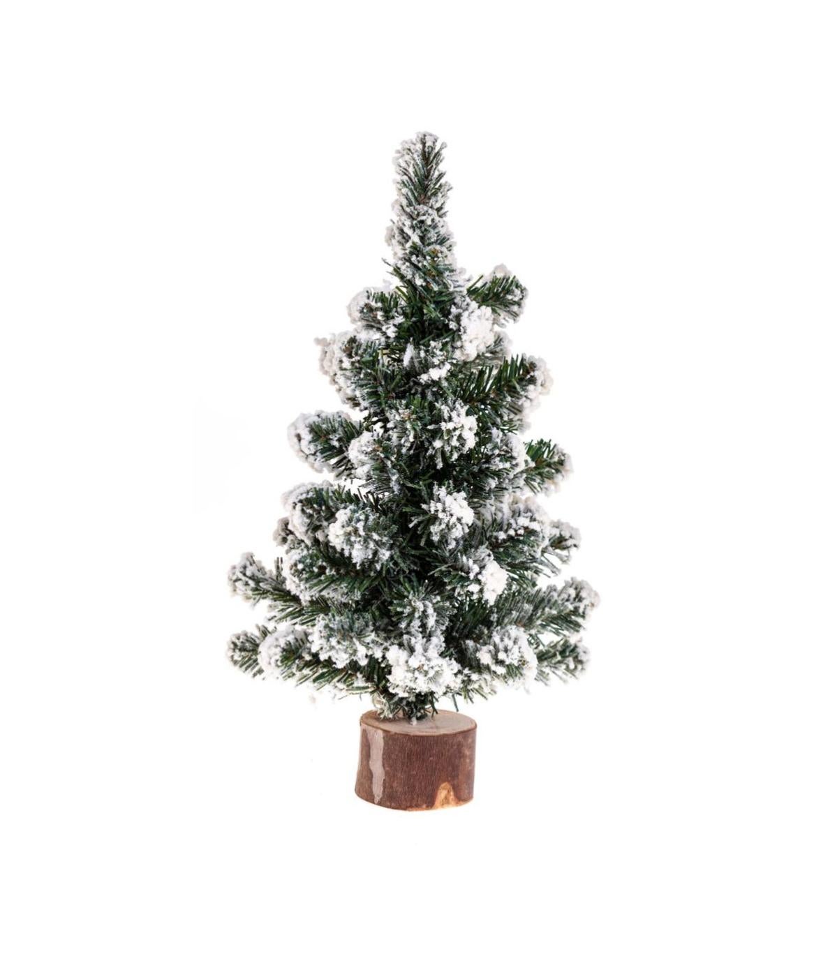 Sapin De Noel 15 Cm Paillete Blanc Socle Bois
