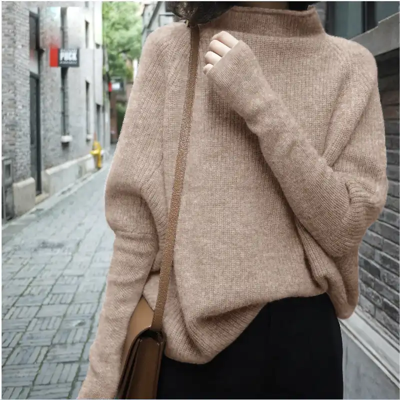 Pull En Cachemire Pour Femmes Col Haut Automne Et Hiver Tricot Epais Ample Paresseux Laine Collection Decontracte Aliexpress