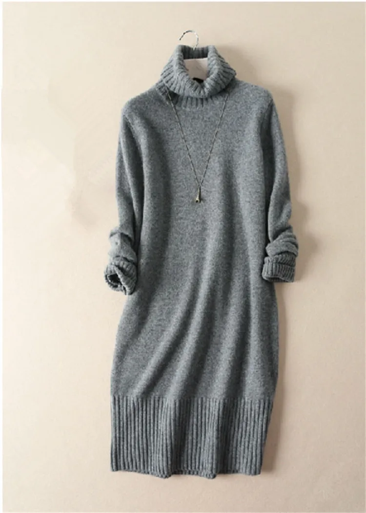 Chevre Cachemire Epais Solide Tricot Femmes Mode Col Haut Long Pull Pull Noir 3 Couleur S L Au Detail En Gros Aliexpress