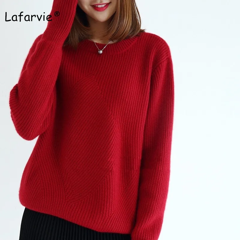 Lafarvie Epais Col Rond Tricote Cachemire Pull Femmes Automne Hiver Chaud Pull Femme Decontracte En Vrac Doux Rouge Tricots Pull Aliexpress