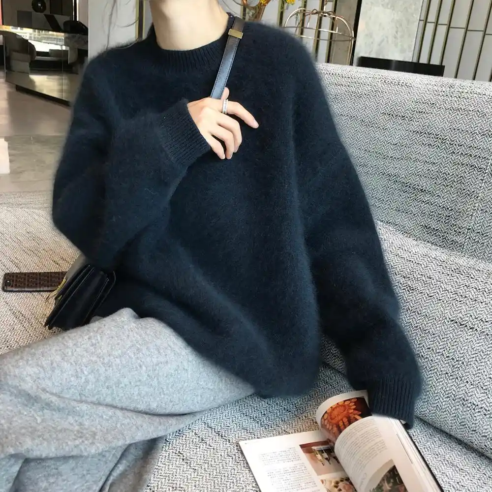 Longs Cheveux Vison Cachemire Epais Chaud Femme Col Rond Couleur Unie Tricot Chemise Bottoming Pull Chandails Livraison Gratuite Jn266 Aliexpress