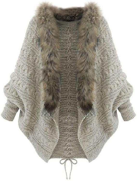 Lootenkun Pull Femme Chic Pas Cher Col De Fourrure Large Cachemire Cardigan Chauve Souris Manches Longues Epaisse Chaude Automne Hiver Mode Tendance Elegant Coton Taille Unique Gris Amazon Fr Vetements Et Accessoires