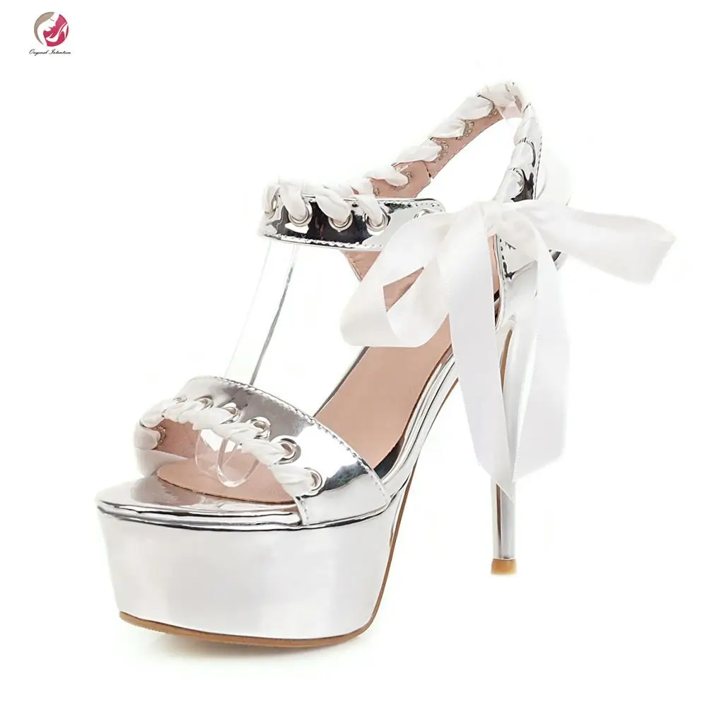 Intention Originale Nouveau Sexy Noir Argent Jaune Vert Sandales Femme Haute Plate Forme Mince Talons Hauts Bout Ouvert Femme Sandales Mature Aliexpress