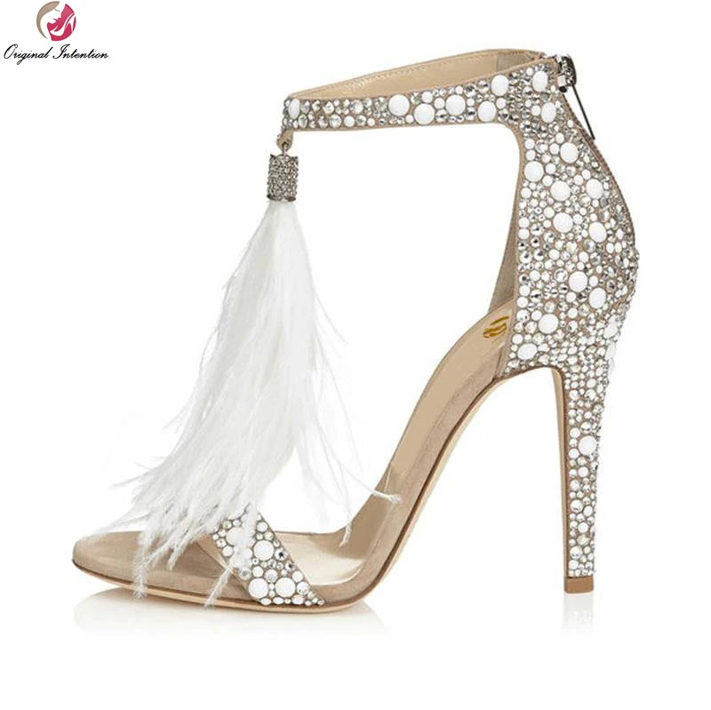 Intention Originale Magnifique Femmes Sandales Elegant Plume Bout Ouvert Talons Fins Sandales Beige Chaussures Femme Grande Taille 3 5 10 5 Aliexpress
