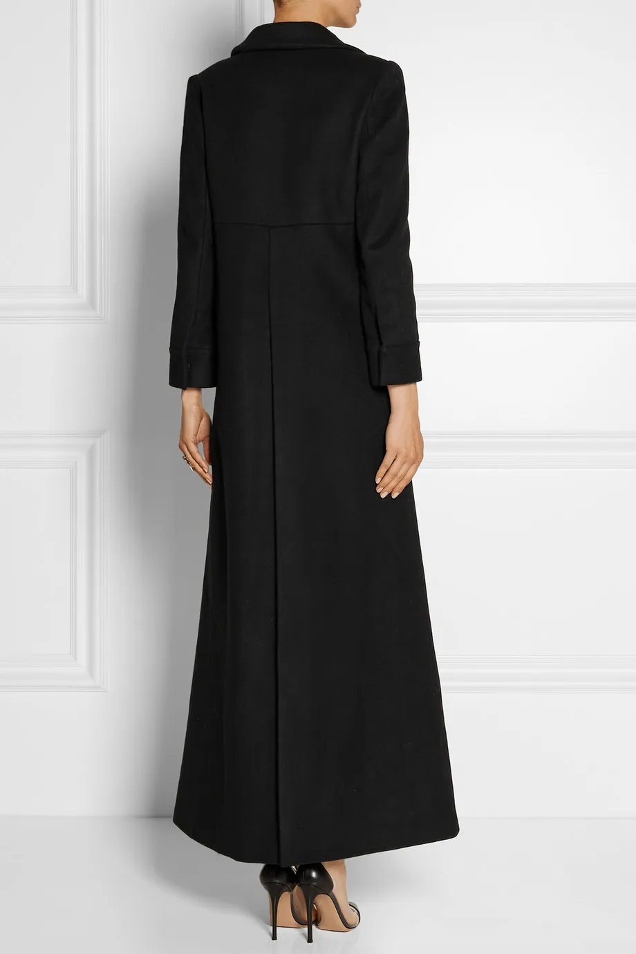 Manteau Long En Drap De Laine Noir Pour Femme Trench Coat