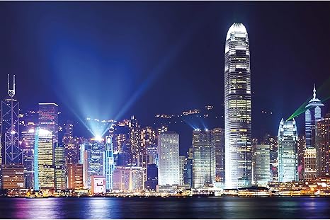 Amazon Com Great Art Poster Hong Kong Island Picture Decoration Kowloon Skyline At Night Symphony Of Lights Skyscrapers China Metropolis Image Photo Decor Wall Mural 55x39 4in 140x100cm Home Kitchen