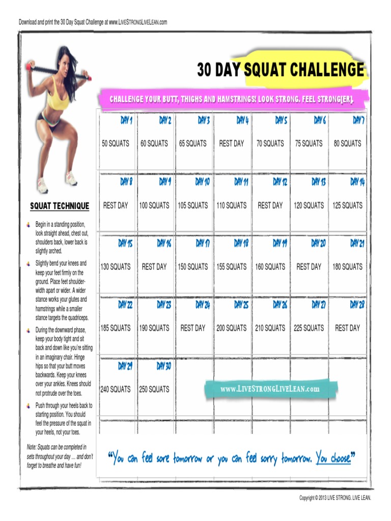 Now download and print our 30Day Squat Challenge graphic or save it to your phone and check off the days as you go Your Day One starts now!.