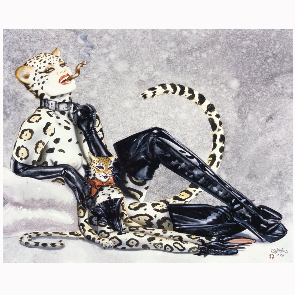 Olivia De Berardinis Watercolor From 97 Model Is Shaunaobrian Watercolor Gouache Pussycat Cat Boots Pussnboots Doll Boudoirdoll Leopard Cigar Smoke Meow T Co Moddw2nsdh