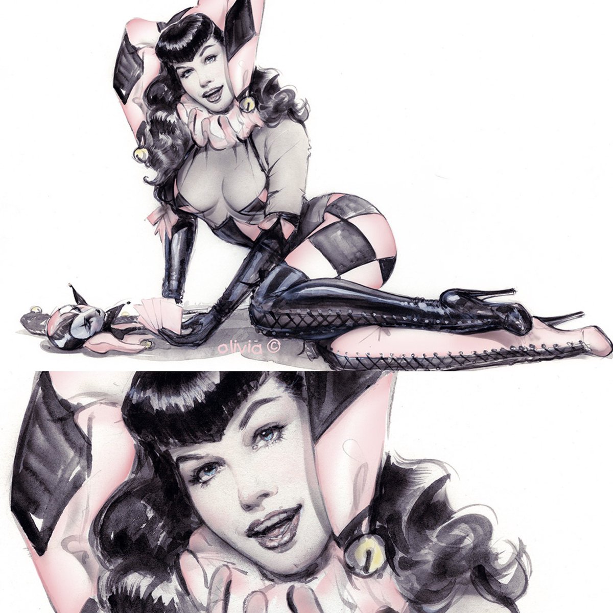 Olivia De Berardinis Our Comic Con Special Jester Bettie Study Art Print Available During Comic Con Only Featuring Bettiepage Eolivia Com Shop Jester Bettie 14 X11 Limited To 100 Pieces 50 Signed And Numbered