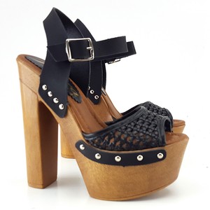 Sandales Femme Suedoises A Brides Et Talons Hauts En Bois Et Cuir