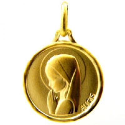 Medaille Augis Vierge Priante En Or Jaune Bijouterie Jallerat Nantes
