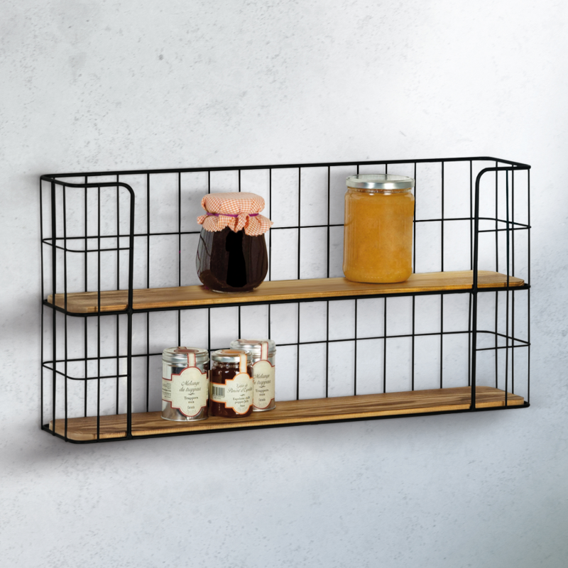 Etagère murale industrielle manguier massif YPSTER. Une décoration murale atypique qui apportera une touche de modernité à la pièce de votre choix. Vous apprécierez l' étagère murale en bois double :.