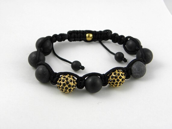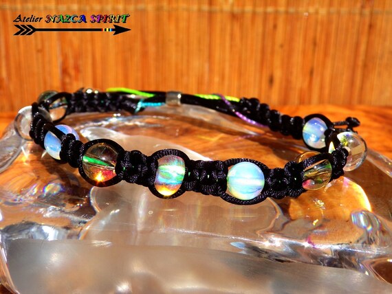 Boho Shamballa Macrame Black And Crystal Pearls Aura And Etsy
