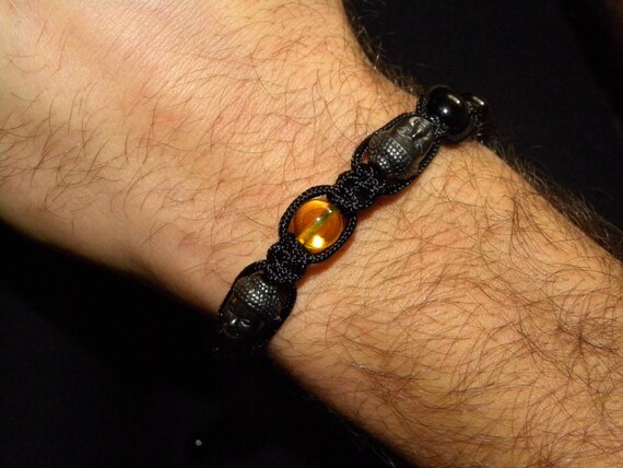 Tibetan Spring Bracelet Shamballa Black Buddha Natural Amber Etsy