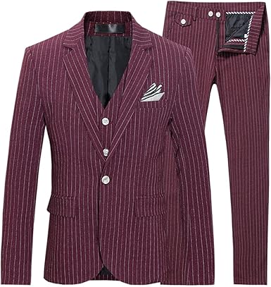 Costume Trois Pieces En Ceremonie A Rayure Veste Gilet Pantalon Habit Mariage Un Bouton Homme D Affaire Amazon Fr Vetements Et Accessoires