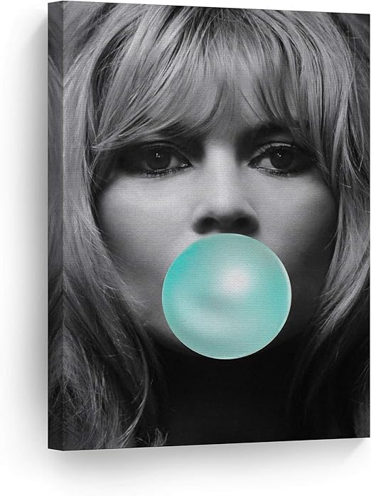 Amazon Com Sexy Look Brigitte Bardot Teal Blue Bubble Gum Chewing Gum Wall Art Canvas Print Black And White Picture Icon Pop Art Home Decor Artwork Gallery Stretched Ready To Hang 100 Handmade