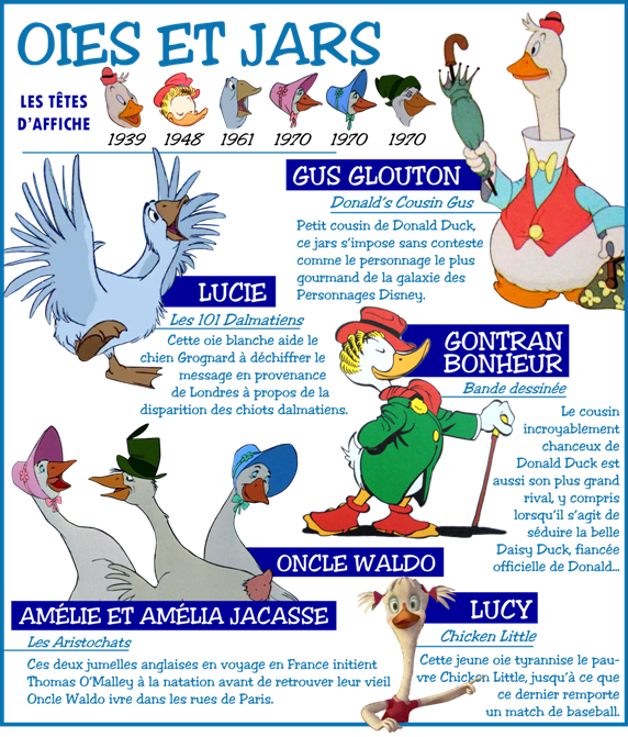 Les Aristochats ne brille pas par son originalité, on l’aura bien compris, mais ce n’est pas, pour autant, un mauvais classique Disney À défaut de se renouveler, le studio y met ce qu’il sait faire de mieux à l’époque, et le résultat est sans conteste assez bon, avec un divertissement réussi pour toute la famille Plus que le trio de chatons et leur mère, tous aussi. Oncle Waldo est l'oncle des oies Amélie et Amélia Lors du retour de la petite troupe à Paris, au Petit Café, Waldo est retrouvé déambulant sur le trottoir, ayant ''mariné'' dans le vin blanc Il quitte les personnages principaux en compagnie de ses ''oiselles préférées''. Edit je viens de me souvenir du chat chinois qui fait tching tchong Par contre, rien sur l'accent anglais des deux oies.