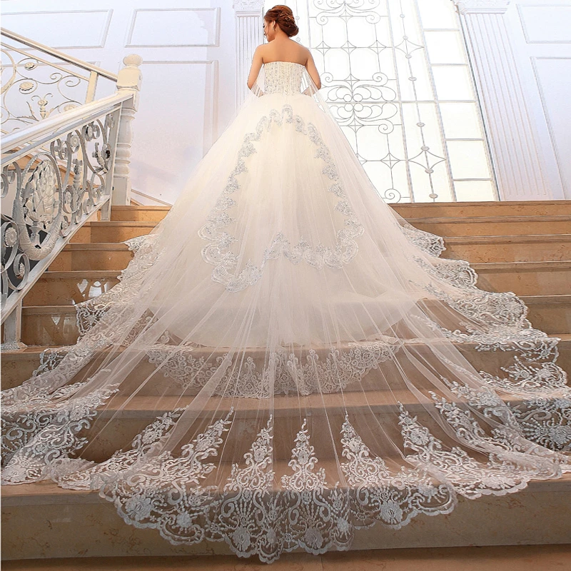 Princess Luxury Tube Top Long Trailing Wedding Dress Crystal Sparkling Diamond Bride Vestido De Noiva Princesa Vestido De Noiva Princesa Noiva Princesalong Trail Aliexpress