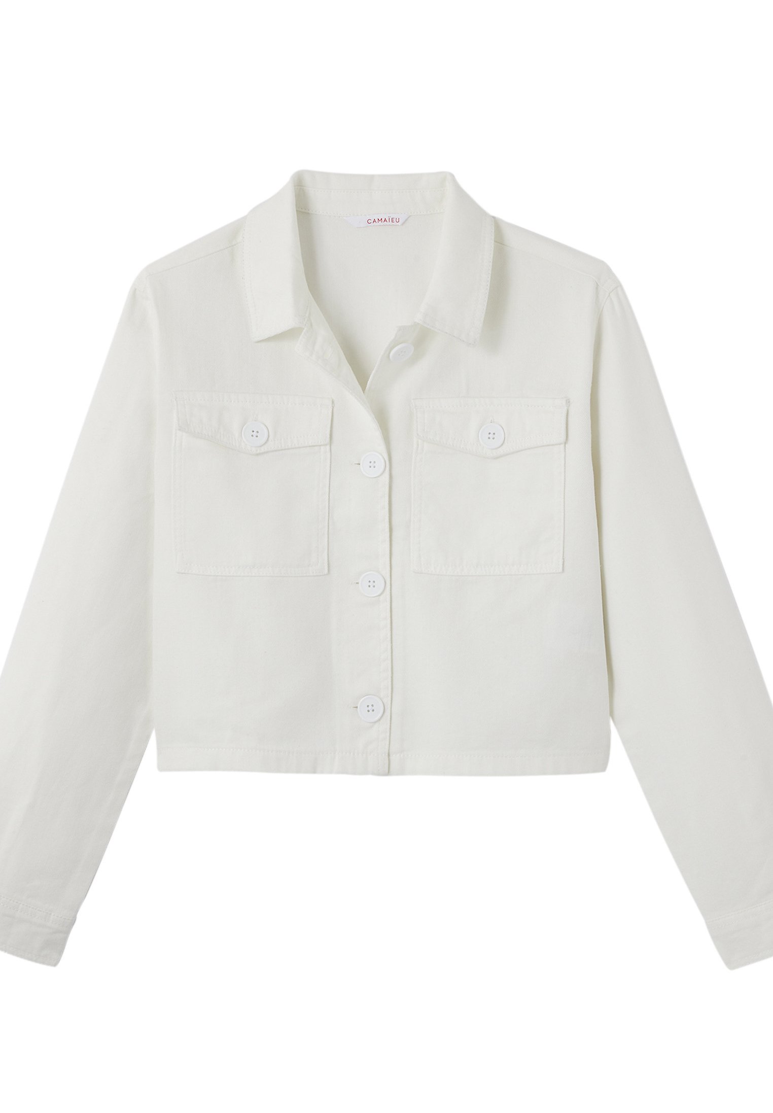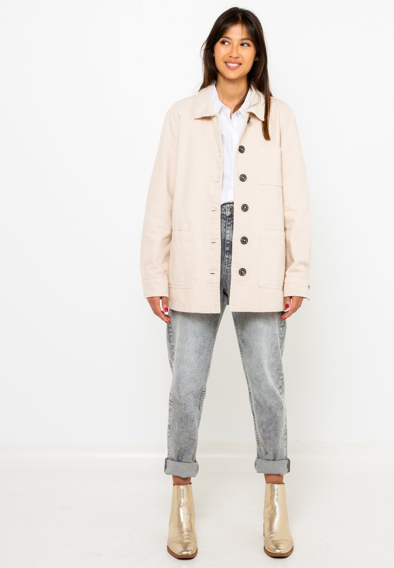 Camaieu Veste Coton Lyocell Manteau Court Craie Ecru Zalando Fr