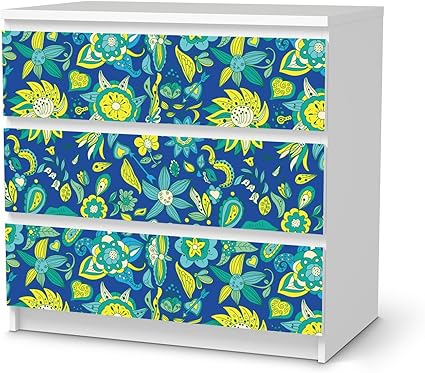 Ikea Malm Commode Meubles Autocollants 3 Tiroirs Flower Pattern Blue Design Stickers Autocollant Decoration Amazon Fr Cuisine Maison