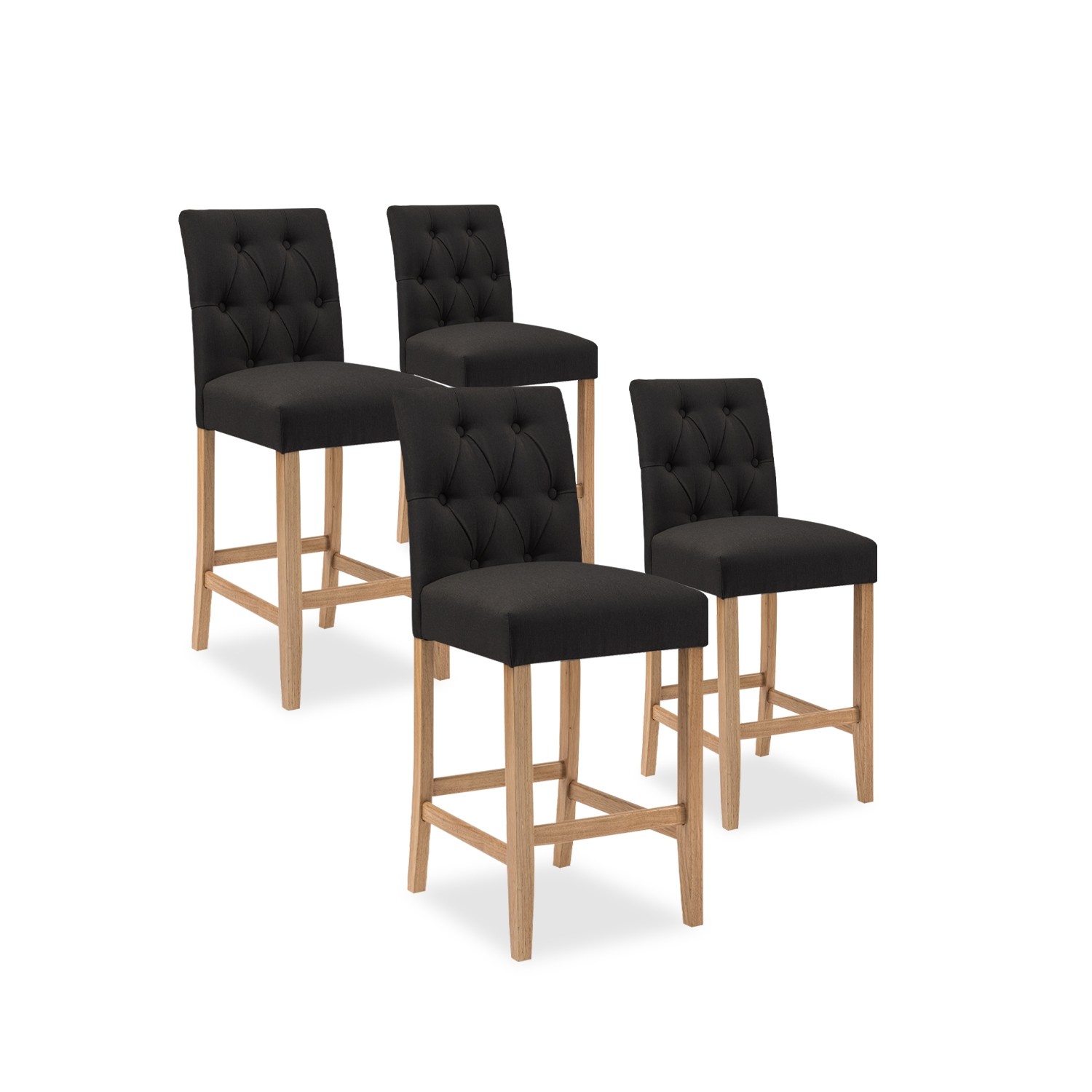 Lot De 4 Chaises De Bar En Bois Gaya Tissu Noir H65cm