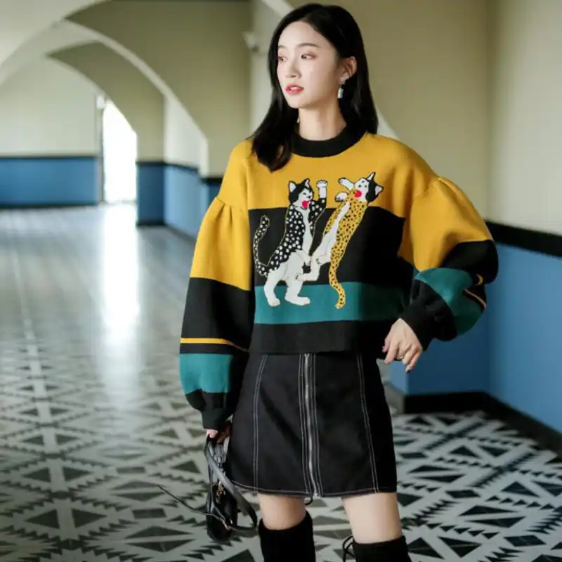 Original Design Fashion Embroidery Cat Loose Knitting Knitted Sweater Women Pullover Pull Femme Jumper Streetwear Autumn Sweter Pullovers Aliexpress