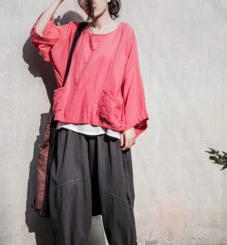 Original Design Cotton Patchwork Pockets Loose Sleeve Women Shirt Ethnic Mori Girl Robe Pull Femme Hiver Loose Plus Size Blouse Blouse Vest Cotton Embroidered Blouseblouses Work Aliexpress
