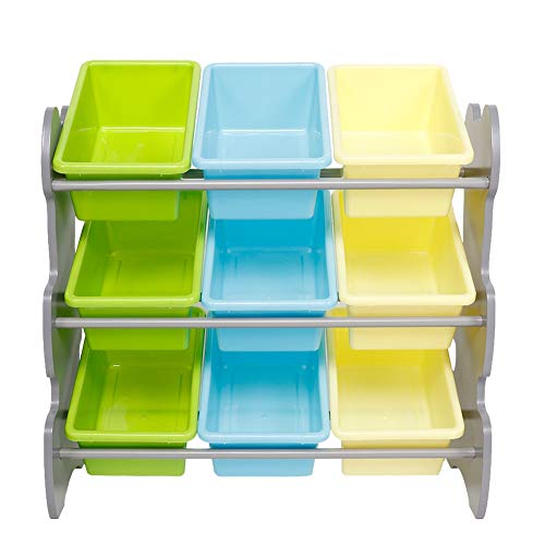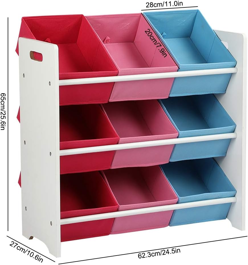 Meubles De Rangement Cuisine Maison Meuble De Rangement Pour Jouets Et Livres Etagere De Rangement Pour Chambre D Enfant Avec 9 Paniers Amovibles Multi Colore Cadre En Bois Robuste Etagere Rangement 3 Couches