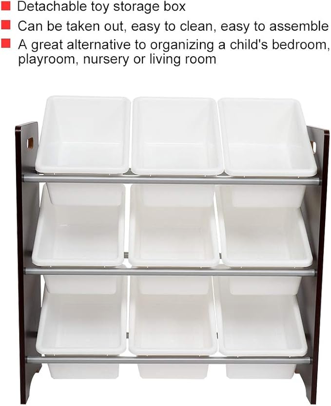 Meuble De Rangement Jouets Etagere Pour Jouets Enfants 3 Etages 9 Paniers Amovibles En Tissu Non Tisse Cadre En Bois Etagere De Rangement Pour Jouets Pratique Pour Chambre D Enfant Salon Salle De Jeux