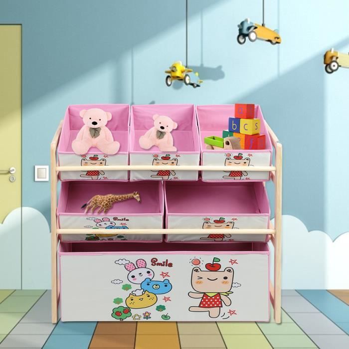 Meuble De Rangement Jouets Etagere Pour Jouets Enfants 3 Etages 6 Boites Amovibles En Tissu Non Tisse Differentes Tailles Cadre En Bois Etagere De Rangement Pour Jouets Chambre D Enfant 65 28 60 5cm Cuisine Maison