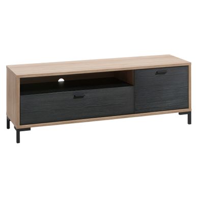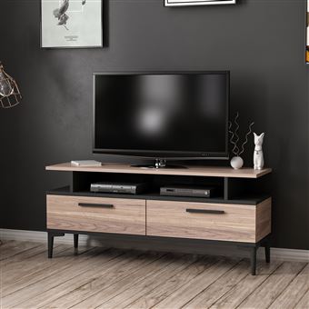 Meuble Tv Industriel Edea Imitation Chene Et Noir Meuble Tv Meuble Noir Et Bois Deco Meuble Tv