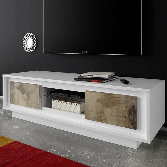 Meuble Tv Moderne Blanc Et Bois 169 Cm Pour Salon