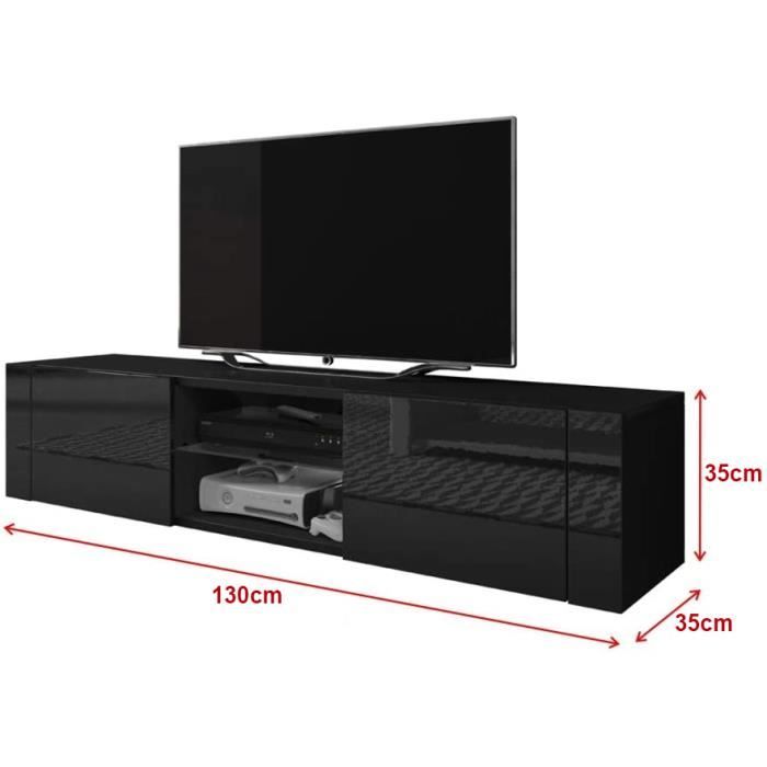 Meuble Tv Moderne En Bois Meuble Television Meuble Tv Bas Avec 2 Portes Et Etageres 130x 35 X 35cm Noir Achat Vente Meuble Tv Meuble Tv Moderne En Bois M
