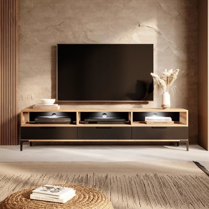 Ensemble Meuble Tv Nano Noir Mat Et Bois Artisana 175 Cm Vente De Tendance Perso Conforama