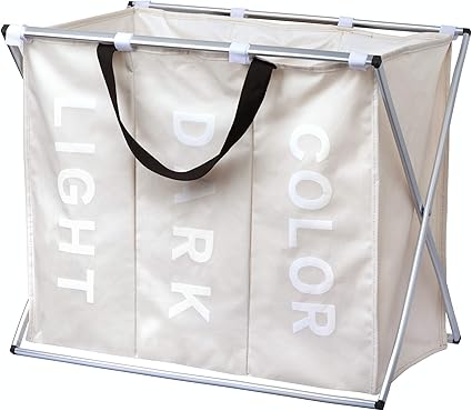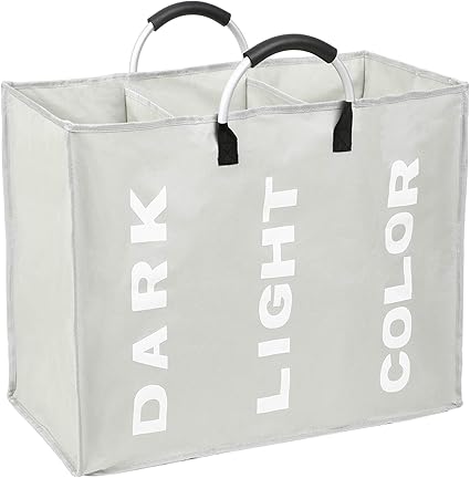 Esonmus Paniers A Linge Pliable Grand Gris Corbeilles A Linge 3 Compartiment 90l Stockage Paniere A Linge Sacs De Rangement Jouets Multifonctions Amazon Fr Cuisine Maison